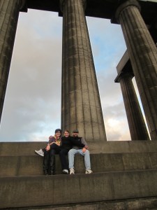 Sitting on the Parthenon at the top of Calton Hill.