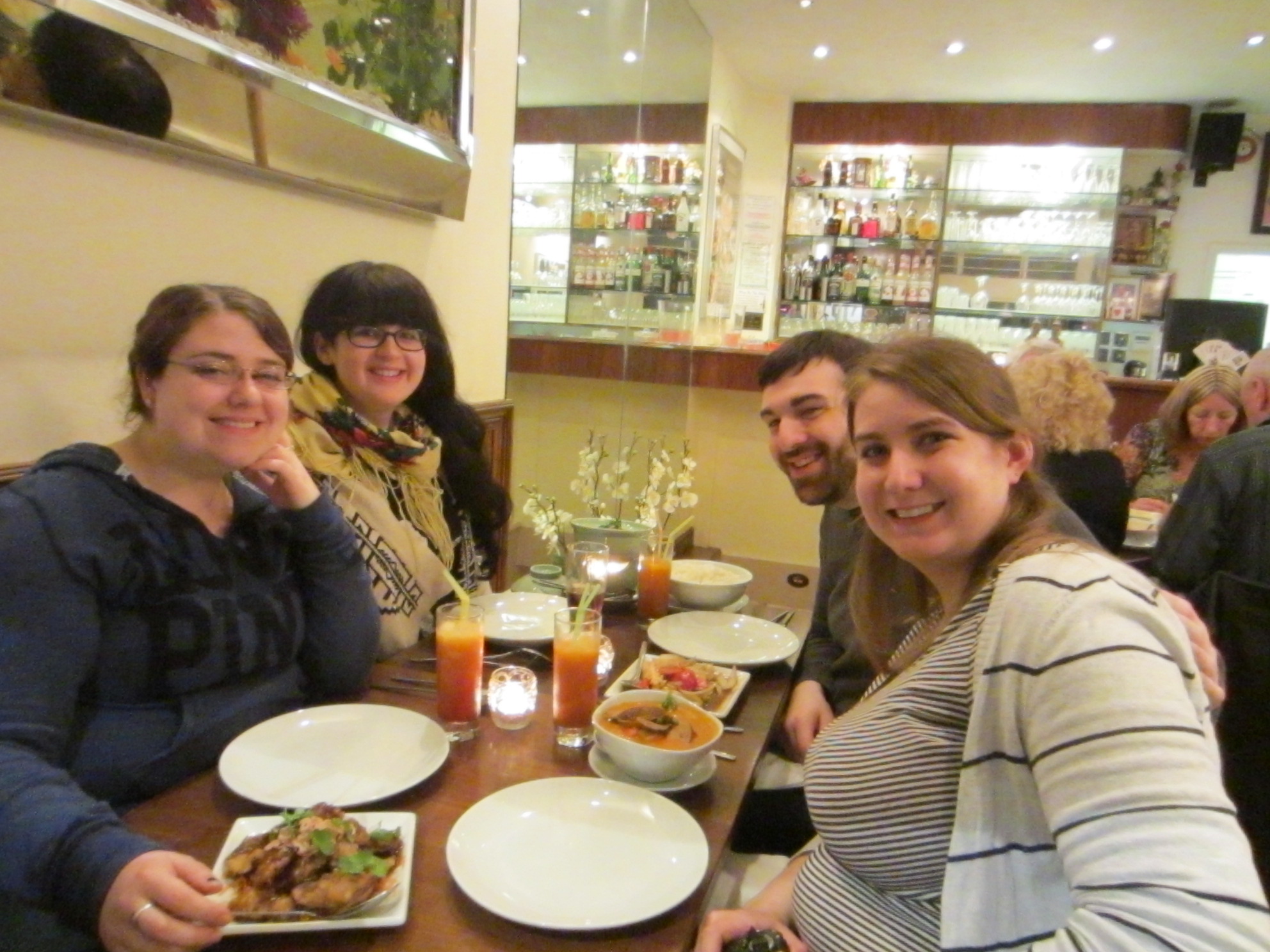 Once Chelsea was out of class, she met us and we hopped on the Tube to grab dinner in Elephant and Castle. The area apparently isn’t too nice and I could tell. Things felt a little more unkempt, but having others with me made it bearable. We wandered into the Elephant and Castle Shopping Center, which was where the restaurant was, and only had a little trouble finding it. But, once we did the meal was delicious. I should probably say that we finally got the Polish food that we had been looking for since Monday. I had goulash and chicken spinach perogis, all of which was delicious.