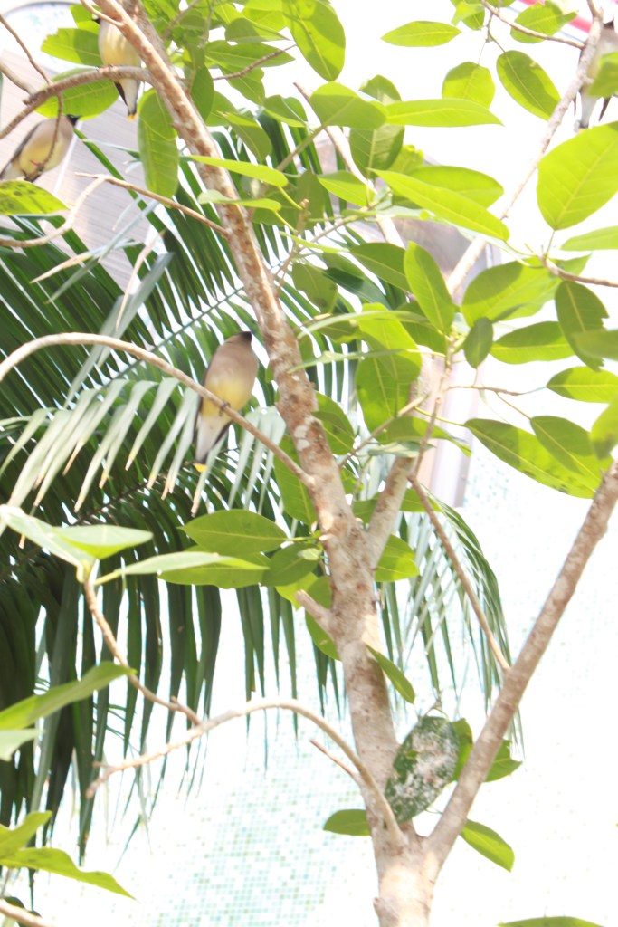 I really like this photo with the background that is almost pure white because of the sunlight coming in, but keeps the leaves and the little bird in bright color and focus.