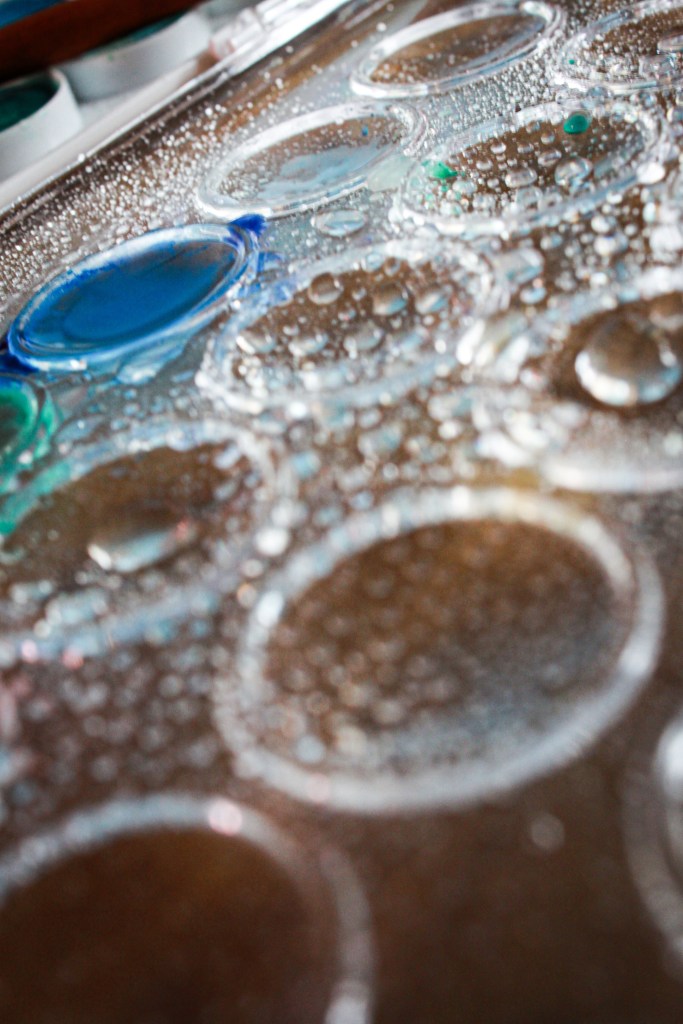 When I saw the droplets on the lid after some afternoon painting, I thought that this would be the ideal photo for the week’s challenge of “water”.
