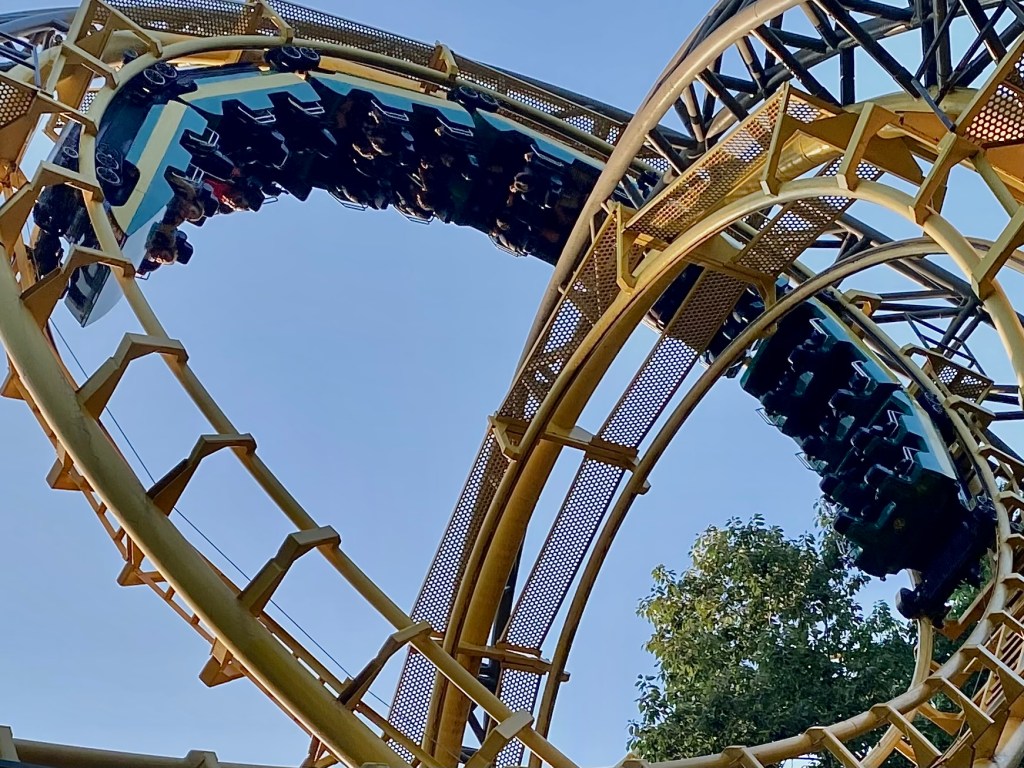 Spent some time riding rollercoasters with friends in Busch Gardens Williamsburg. I managed to catch the oldest coaster in the park with a car going through one of the loops just seemed so fitting for this prompt. Upside down. Those people are definitely upside down.